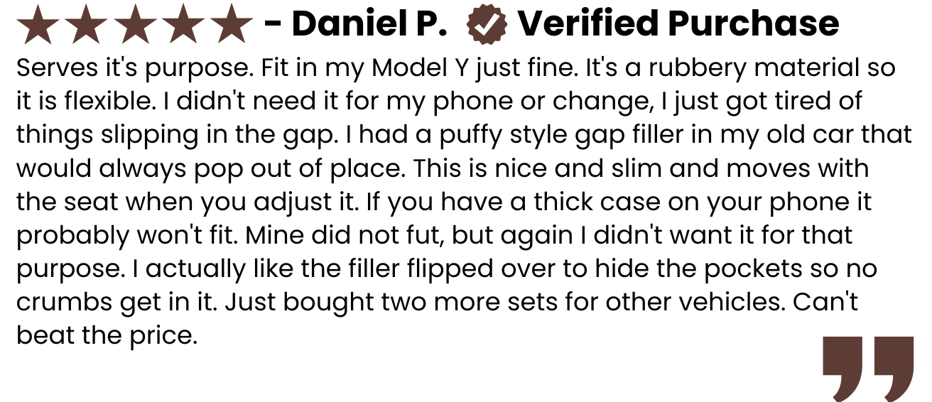 Made of soft PU leather-textured EVA, these gap fillers are not only tough and durable but also scratch-resistant, waterproof and easy to clean. They can easily fit most cars, trucks and SUVs with seat gaps between 1 inch (2.5 cm) and 2.3 inches (6 cm) wide.